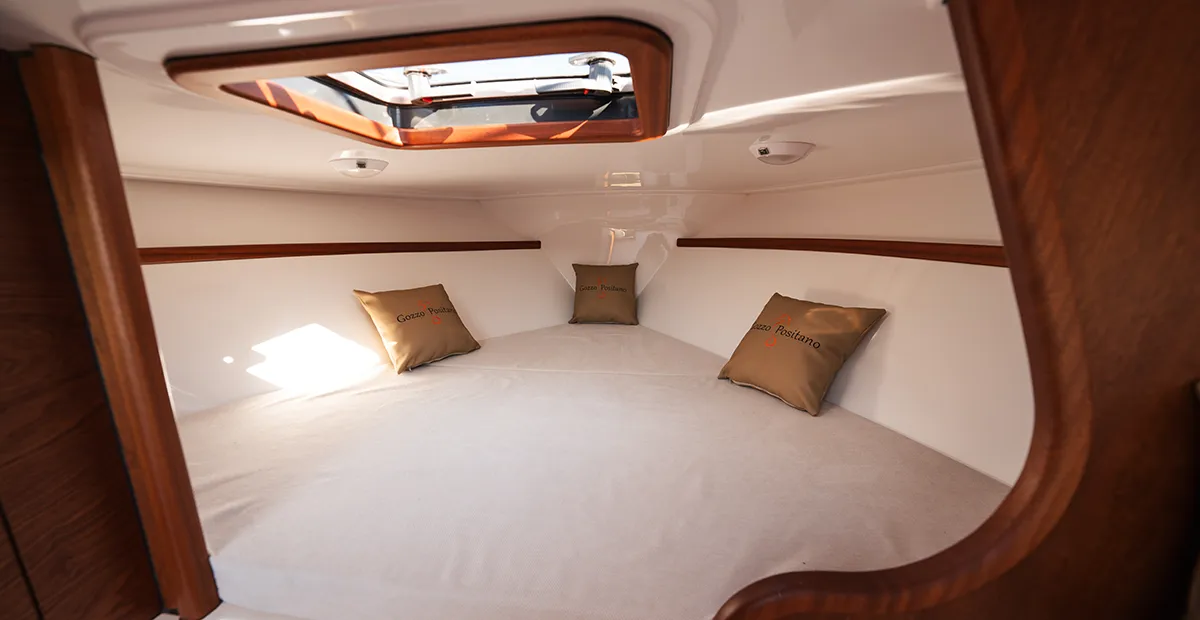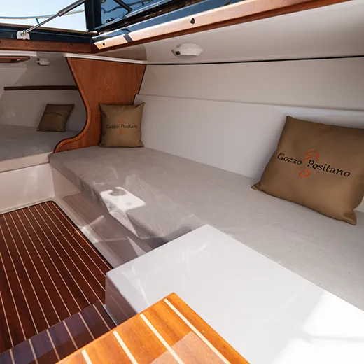 Con i suoi 8,22 metri di lunghezza fuori tutto e la possibilità di ospitare fino a 8 persone, il Positano 27 offre un equilibrio ideale tra vivibilità e maneggevolezza. La carena, equilibrata e stabile, garantisce navigazioni fluide anche con mare formato, mentre gli interni — sobri ma curati — rendono la vita a bordo confortevole.