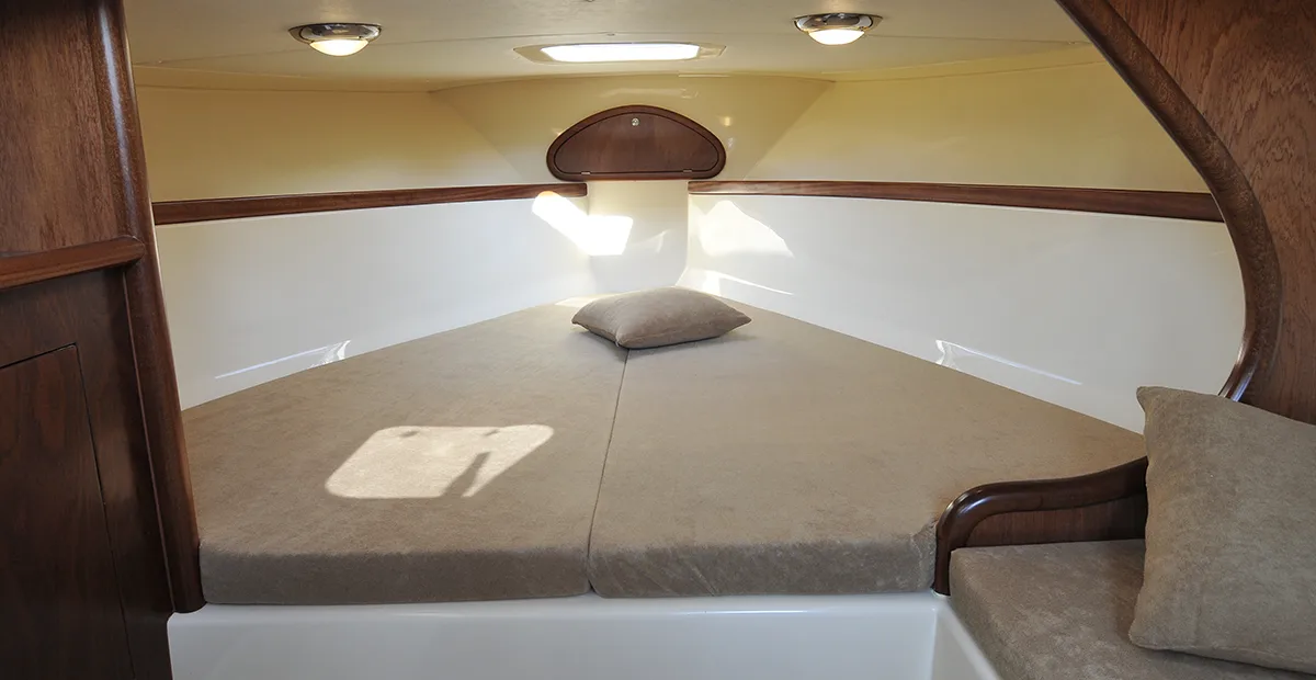 I rivestimenti interni in Sky, la cuscineria soffice e le finiture curate fanno percepire un comfort autentico, mentre il letto matrimoniale offre fino a 3 posti letto, ideali per brevi crociere o weekend fuori porta.