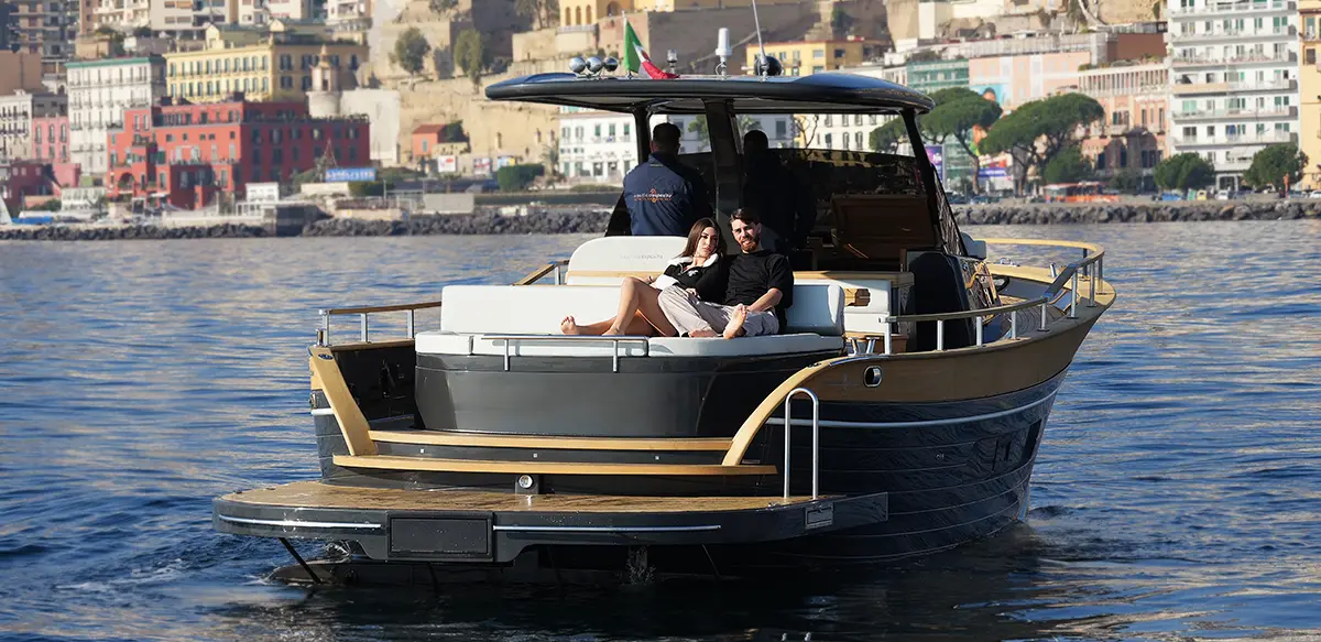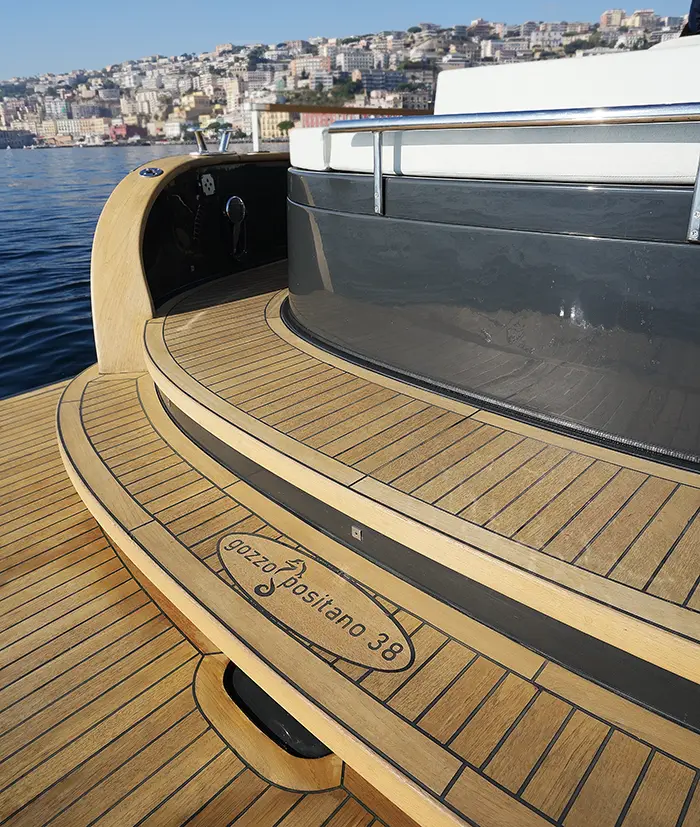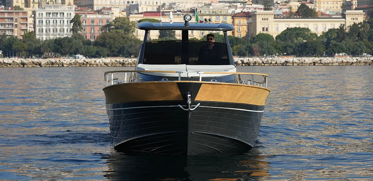 L’alba si riflette sul teak lucente, il mare è uno specchio calmo che invita a partire. Il suono profondo dei motori rompe il silenzio, e il gozzo Positano Open 38 scivola sull’acqua con la naturale eleganza di chi conosce il mare da sempre, un invito a vivere il mare come esperienza totale.