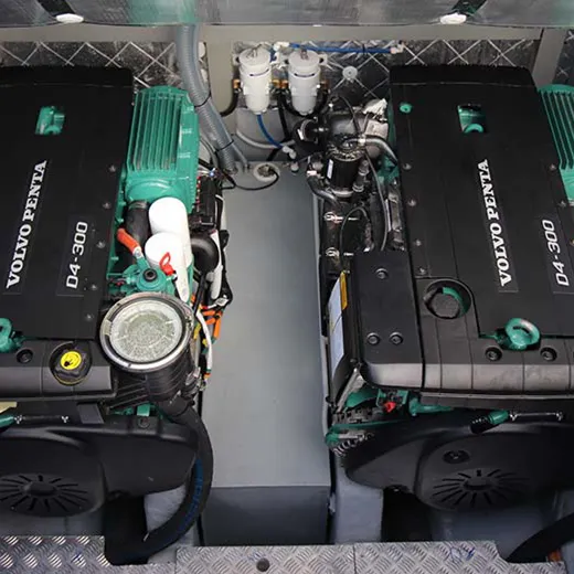 I due motori entrobordo (che possono arrivare fino a 370HP) garantiscono un'ottima potenza in ogni condizione di mare.