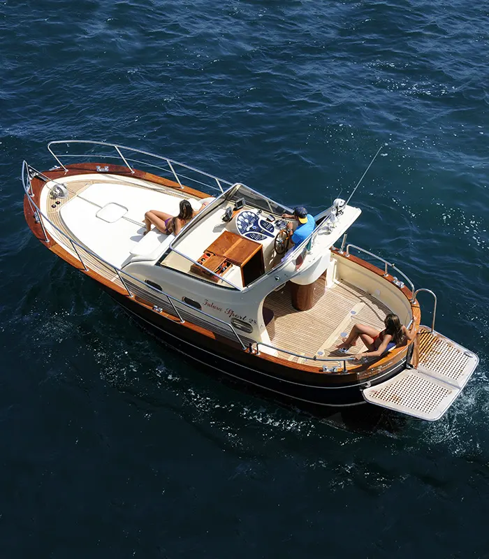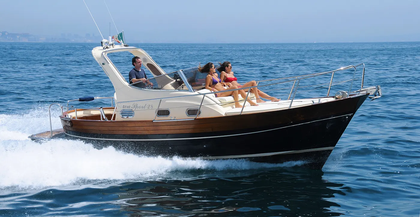 Progettato per offrire maggiore velocità e ampiezza rispetto ai modelli più compatti, il Positano Sport 28 interpreta la tradizione con un tocco deciso. Le sue linee slanciate anticipano una navigazione brillante, sostenuta da motorizzazioni potenti e da una carena che garantisce stabilità sorprendente anche nelle accelerazioni più decise. È un gozzo che conserva il fascino dei grandi classici, ma lo reinterpreta con una vitalità moderna e con una presenza imponente sull’acqua.