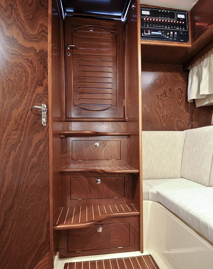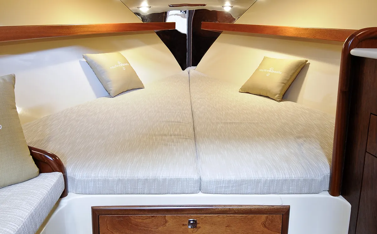 Sottocoperta, il Positano 28 Sport non manca di comfort e versatilità: ospita un comodo letto matrimoniale affiancato da un divano convertibile che permette di gestire al meglio gli spazi, creando fino a quattro posti letto. L’ambiente è reso ancora più funzionale dalla presenza di un mobile attrezzato con lavello, fornello e frigorifero opzionale.
