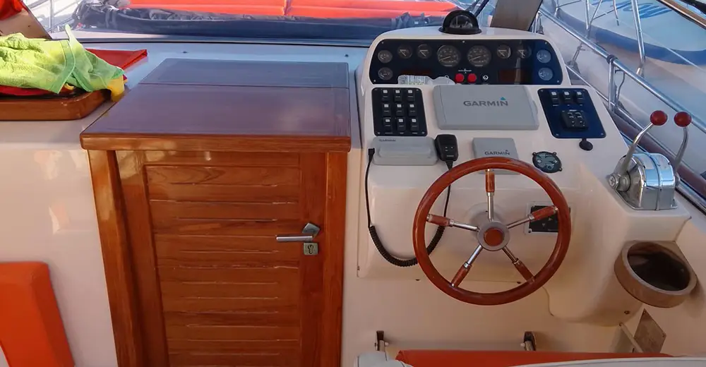 Pilota Automatico – Generatore – Tv – Gps/Map Garmin – Plancetta di Poppa + Scaletta bagno – Frigo Esterno – Cucina Esterna con bistecchiera – Ancora in Acciaio inox + Catena zincata – Elica di Prua – T-Top – Boiler – Caricabatteria – Tergicristalli – Stereo + Casse – Tendalino di Poppa – Copriprendisole – Copridivano – Copricruscotto – Verricello elettrico.